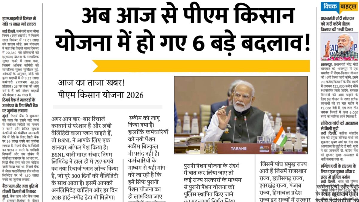 घर में बेटी है तो खुशखबरी! मिलेंगे ₹1.50 लाख, जानिए लाडो प्रोत्साहन योजना Lado Protsahan Yojana 2026 Shruti Singh — January 22, 2026 अभी अभी जारी हुई CNG की ताज़ा कीमतें, इन शहरो में सस्ती हुई CNG – तुरंत जानें Today CNG Price Shruti Singh — January 22, 2026 8वें वेतन आयोग से पहले DA में बड़ी बढ़ोतरी तय? जानिए पूरी डिटेल DA Hike New Update 2026 Shruti Singh — January 22, 2026 बिना हेलमेट बाइक चलाने पर अब भी कटेगा चालान, जानिए नया ई-चालान नियम Traffic Rules New Update Shruti Singh — January 22, 2026 पीएम आवास योजना 2026 की नई सूची जारी, घर बनाने के लिए पैसा मिलना शुरू PM Awas Yojana Beneficiary List 2026 Shruti Singh — January 22, 2026 नए साल 2026 की शुरुआत में पेट्रोल-डीज़ल और एलपीजी सस्ता, आम जनता को बड़ी राहत Petrol Diesel LPG Price 2026 Shruti Singh — January 22, 2026 सरकारी कर्मचारियों के लिए बड़ी अपडेट रिटायरमेंट की उम्र बढ़ेगी जानिए पूरी बात :Retirement Age Hike Shruti Singh — January 22, 2026 कम सिबिल स्कोर वालों के लिए राहत भरी खबर, लोन लेना होगा आसान CIBIL Score New Update 2026 Shruti Singh — January 22, 2026 किसानों के लिए बड़ी खुशखबरी: KCC लोन पर ₹2 लाख तक कर्ज माफी KCC Kisan Karj Mafi Yojana Shruti Singh — January 21, 2026 Previous 1…67891011 Next